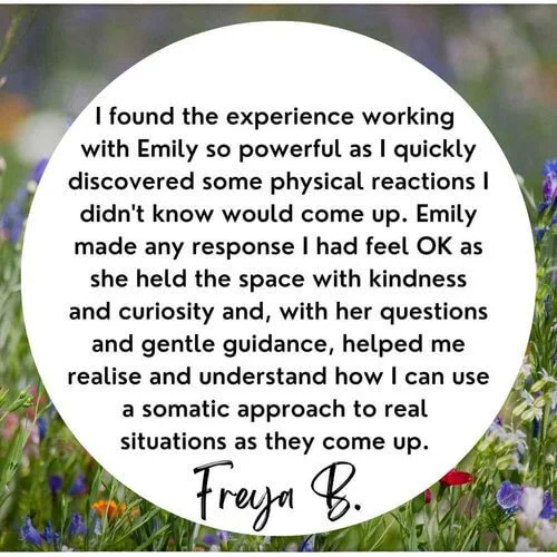 As a trauma informed practitioner we explore with gentle curiosity what the body might be holding onto from past traumas.