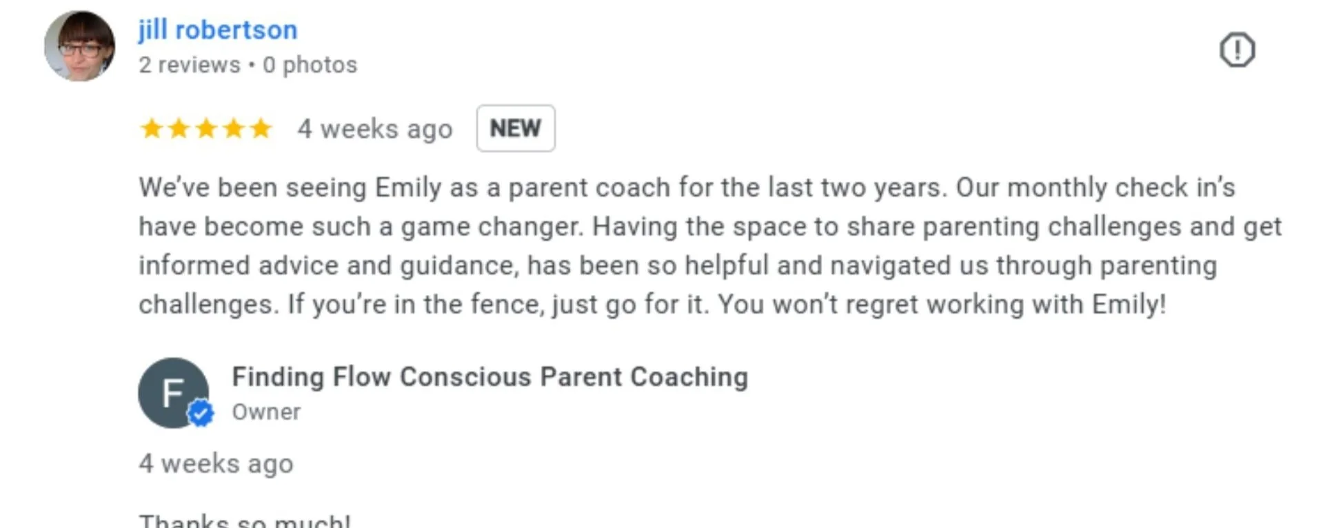 I would wholeheartedly recommend Emily as a parenting coach.”